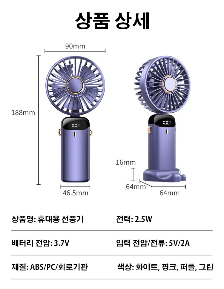 저소음 설계의 휴대용 선풍기